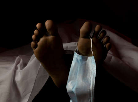 an Indian or Asian person laying dead with outstretched hand during COVID-19 or corona virus outbreak