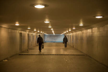Two persons in the underground crosswalk, Moscow, Russia
