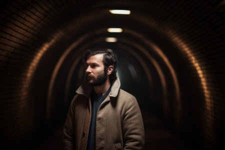 Portrait of a young man in a tunnel. Men's beauty, fashion.