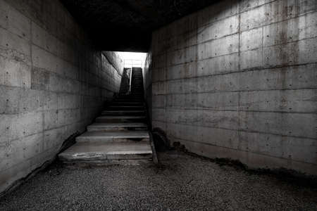Moscow 17/11/2019. Dark corridor of old underground Soviet bunker. USSR bunker built in the middle of the 20th century for use as a secure repository of important government documents. Underground 43m