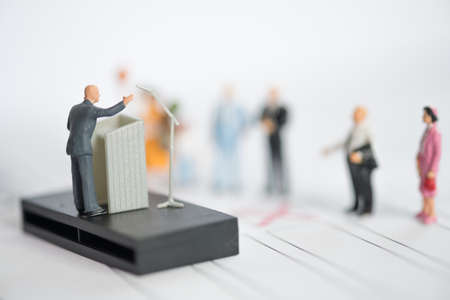 Miniature people : A politician speaking to the people during an election rally