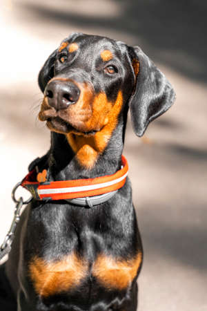 Cute dog of the Doberman breed is posing