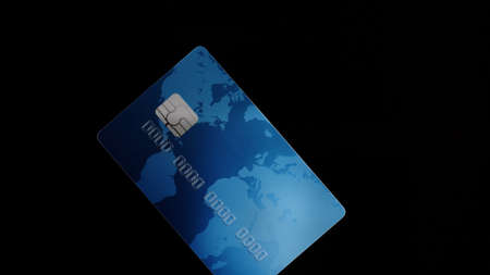 Credit plastic card isolated on black background. Online payment. Cash withdrawal. Business financial operations concept. Shopping sign. Copy-space mockup advertising