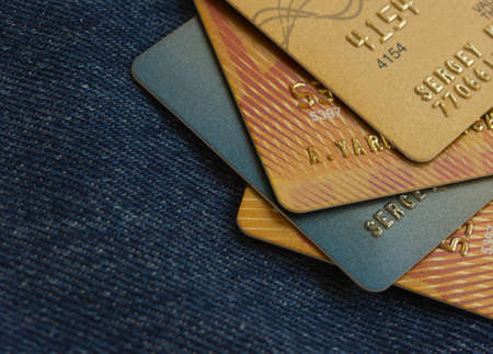 New-York , USA - June 4 , 2020: Using credit cards from visa or maestro system close up view