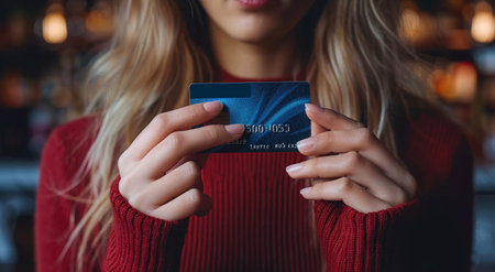 online payments made easy with credit card. personal finances and money management. hand holding bank card.