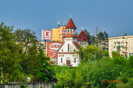 Gheorghe Sincai Street Romania Bistrita , 2021, august ,Roman Catholic Church