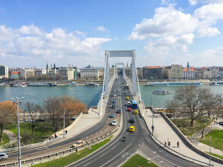 City landscape in Budapest with bridge and amazing sky with some