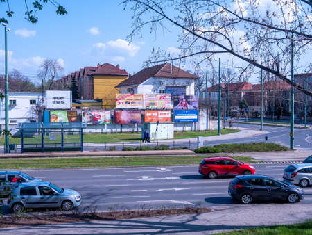 SZEGED, HUNGARY - MARCH 28, 2020: View on the traffic and the tram in Szeged, Hungary.
