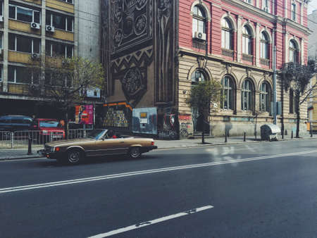 Bucharest, Romania, 8 November 2020 - Old buildings on Nicolae Balcescu (previously known as Gheorghe Magheru) boulevard in Bucharest, Romania, in a sunny autumn day