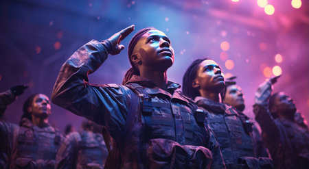 A group of uniformed military personnel in formation - AI generated