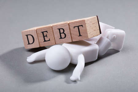 Close-up Of A Debt Wooden Blocks Over The Lying Human Figure