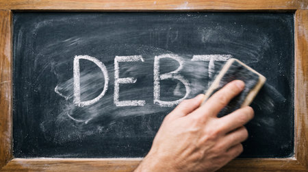 Hand hold cubes wooden blocks with the word debt on the White background, Payment of taxes and of debt to the state. Concept of financial crisis and problems, Reduction or restructuring of debt.