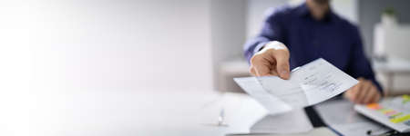 Payroll Payment Check. Giving Paycheck. Business Cheque