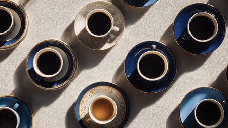 Several cups of coffee. AI Generated