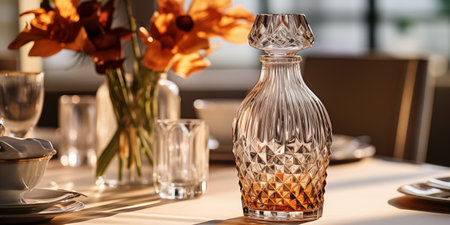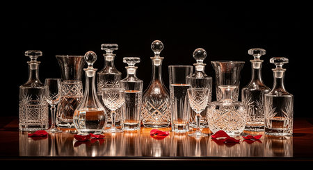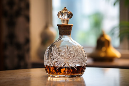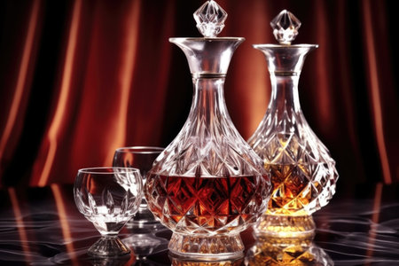 crystal wine decanter placed on a shiny surface, created with generative ai