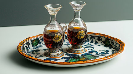 Vintage Sake Set on a Golden Tray generative by Ai.