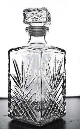 Crystal decanter of liquor on a black background
