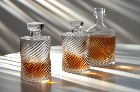Elegant perfume bottles in trendy summer parfumerie display with stylish sunlit vibes