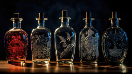 surface bottle background illustration reflection dazzling, elegant glass, fragrance antique surface bottle background