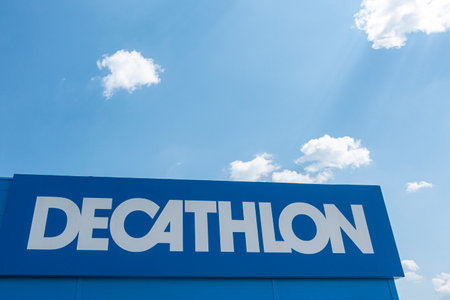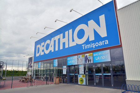 Timisoara, Romania, May 8th: The logo of the Decathlon store, Timisoara, Romania. Shot taken on May 8th 2014