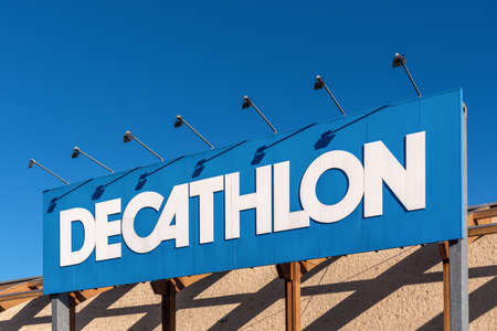 Belgrade, Serbia - April 1, 2021: Big 3d Letters Sign Decathlon Sports Store in Belgrade, Serbia.