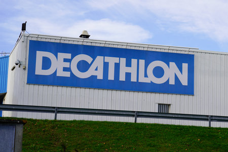 Saint-Martin-des-Champs, France - August, 24 2022: Sign of Decathlon, a French sports and leisure retailer.