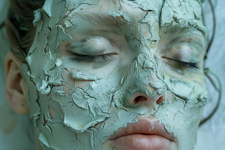 A close-up photo showing a womans face completely covered in transparent plastic wrap, Photorealistic digital painting of a facial injury healing process, AI Generated
