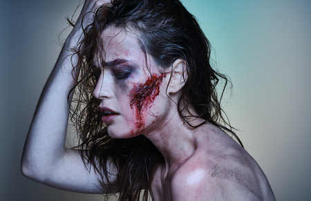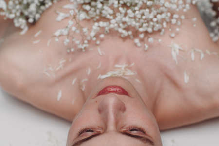 female patient Red lips plastic surgery operation bare shoulders studio lifestyle