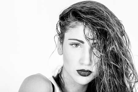 beautiful brunette italian girl posing in studio with dark lipstick. High quality phbeautiful brunette italian girl posing in studio with dark lipstickoto