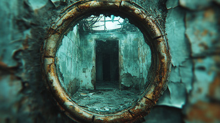 Generative AI Image of Circle Mirror in Horror Abandoned Empty Room