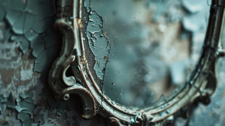 An antique mirror with chipped paint and blurry reflections symbolizing the blurred lines between reality and a distant memory