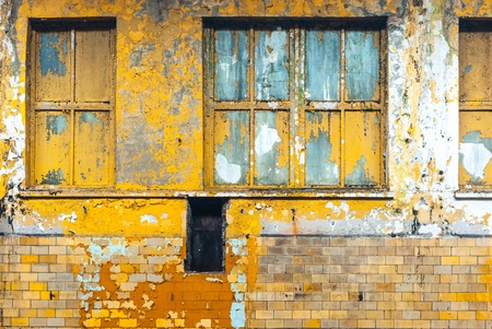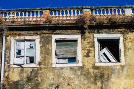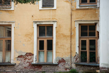Dirty facade of a ruined house