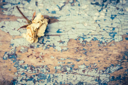 Faded rose on an old painted wooden background. Vintage style effect