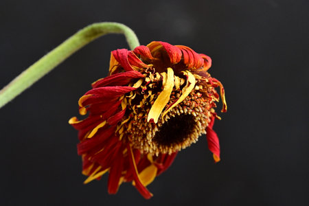 Macro details of a faded Gerber flower that lost its center part
