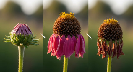 Echinacea flower life stages from budding to wilting
