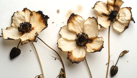 A close-up banner featuring the intricate details of a single dried flower, with deep shadows and high contrast that add drama and intensity. Generative AI