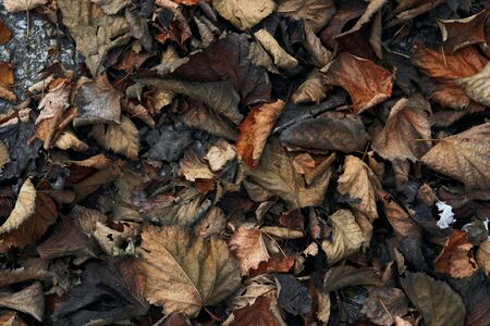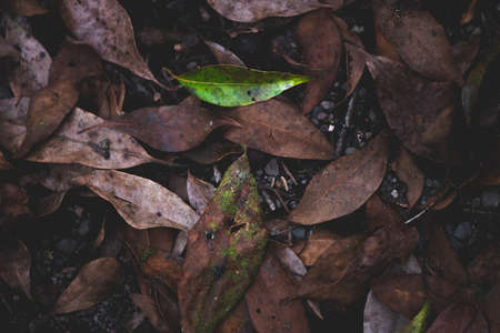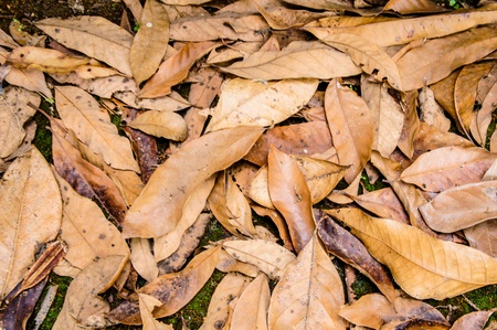 Dry autumn leaves falling down and pile up on floor, there are can made fertilizer for agriculture husbandry or farming, natural background