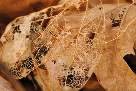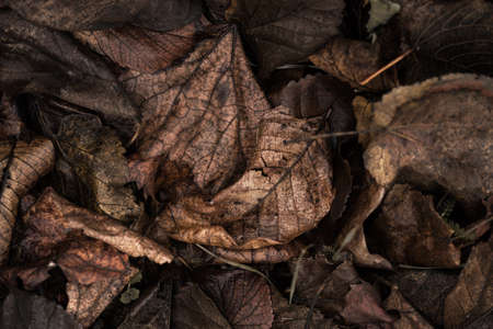 Autumn dried fallen leaves, brown foliage with vintage pattern.