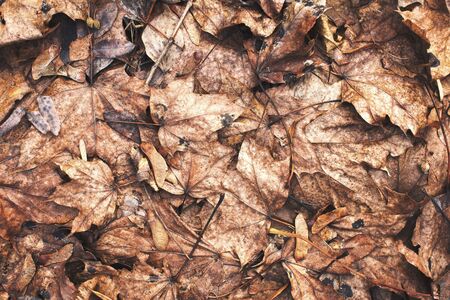 Dry leaves on the ground. Autumn background. Natural pattern.