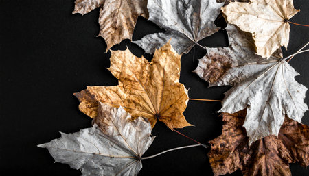 Dry leaves on black background. Autumn concept. Flat lay, top view.