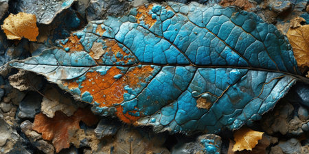 autumn leaves with rust image 7 captures the essence of peter lippmann's style, featuring a vibrant blend of light cyan and dark azure hues. the photo showcases colorful layered forms reminiscent of naturalistic landscapes, while textured shading adds depth. this national geographic photo also highlights the beauty of colorful woodcarvings. ai generated