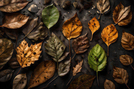 bundle of fallen leaves with variety of shapes, sizes, and textures, created with generative ai