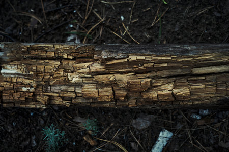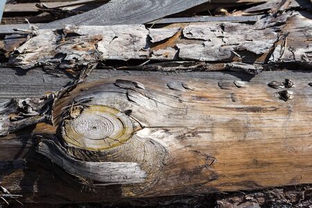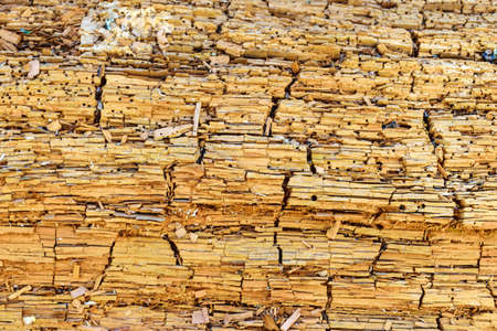 Rotten wood texture. Rotten tree close-up and its rotten fragments