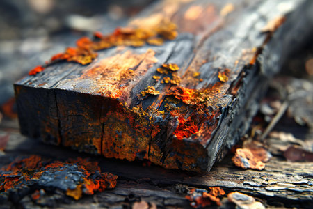 Study the intricate details of a charred wooden surface, highlighting natural textures, rich colors, and unique patterns suited for rustic or organic-themed designs.