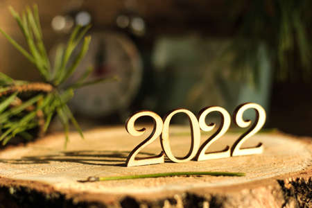 New Year wooden numbers with date 2022