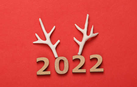 new year concept. Deer antlers and 2022 on red background