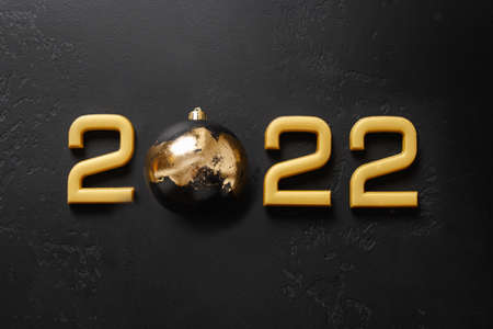 Merry Christmas and happy new year concept, 2022 golden numbers on black background
