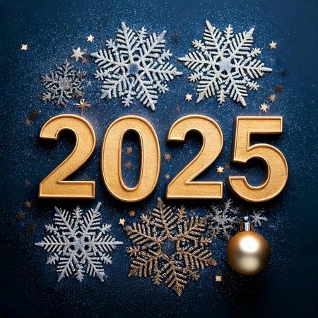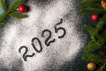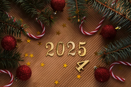 New Year 2025 background. Number of the coming year in Christmas decoration.