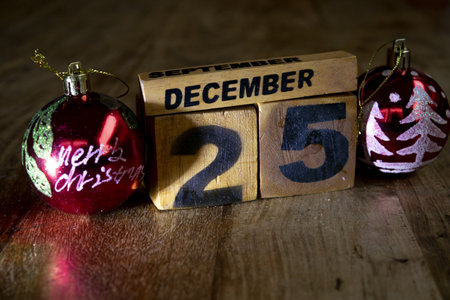 December 25th date on wooden retro calendar. christmas background