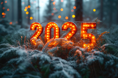 Sparkling 2025: illuminated nature-themed new year celebration.